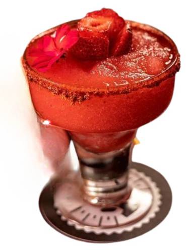 Vertemos la margarita en la taza o recipiente y decoramos con una fresa entera y una rueda de lima o limón si os gusta.