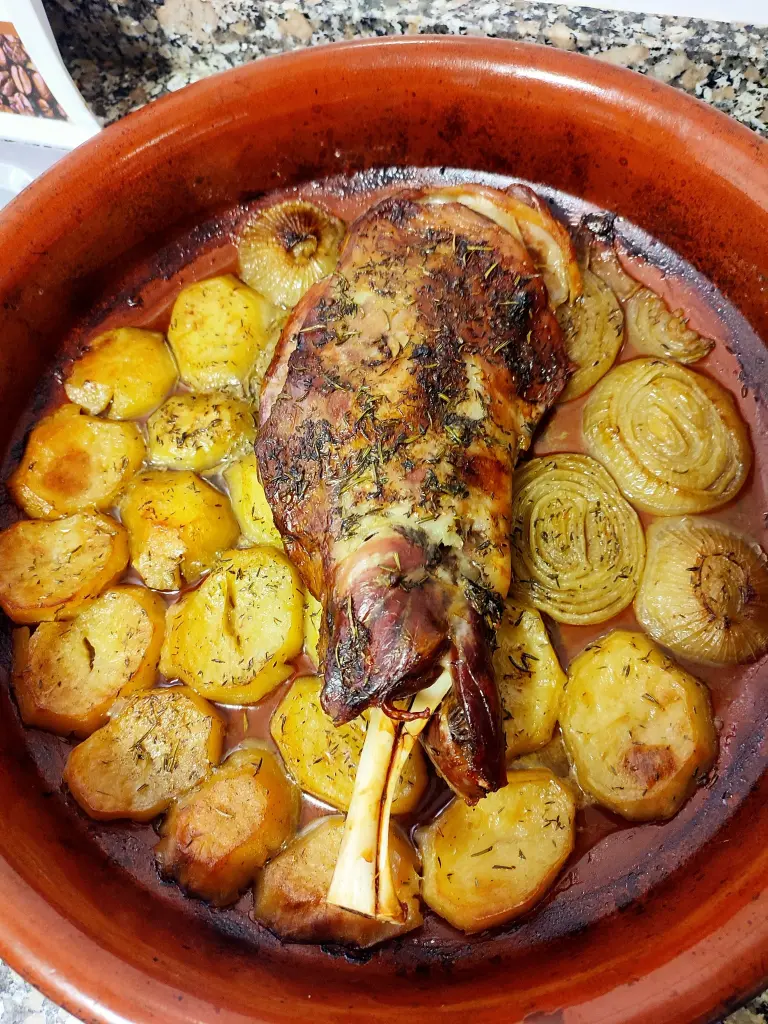 - Comprobar la cocción: Para asegurarte de que el cordero está en su punto, puedes pinchar con un tenedor en la parte más gruesa de la pierna. Los jugos deben salir claros y no rosados. La carne debe estar muy tierna y separarse fácilmente del hueso.